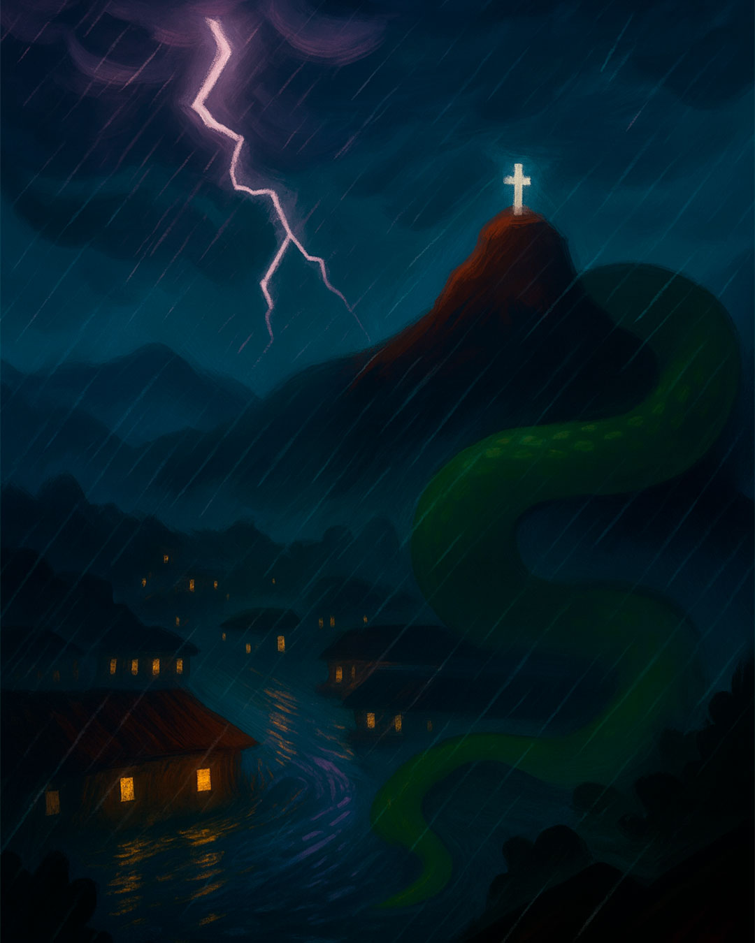 Solo el aguacero… y de vez en cuando un crujido profundo, como si algo enorme se moviera bajo la tierra.
